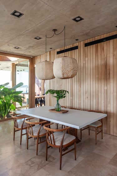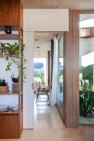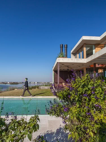 Con una impronta bien definida el arquitecto Leandro Arfuso vuelve a destacar con una construcción en donde la luz natural, el contraste de la madera con el hormigón visto y el vidrio son protagonistas junto con un excelente trabajo de paisajismo creando un ambiente in and out ejecutado a la perfección presente en toda la casa.