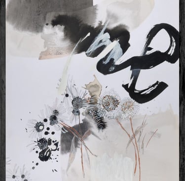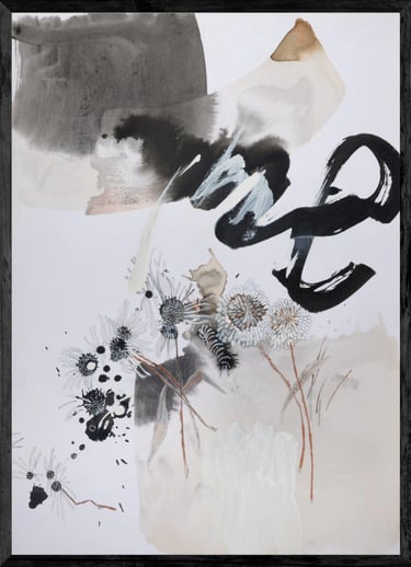 Acompañando la atmósfera tenemos “Kurume” por Daniela Pisani, una técnica tradicional japonesa de mancha sobre un fondo blanco y limpio que le da ese toque de modernidad y “Oruga” por Cecilia Borghi que toma técnicas clásicas tales como la acuarela y las ejecuta de una manera creativa y única.