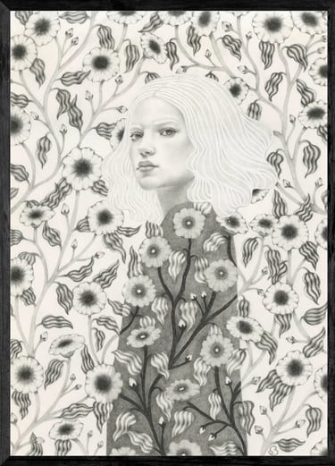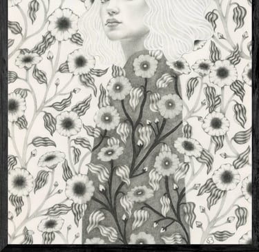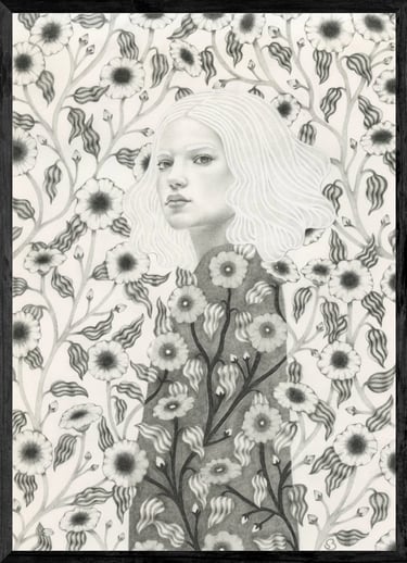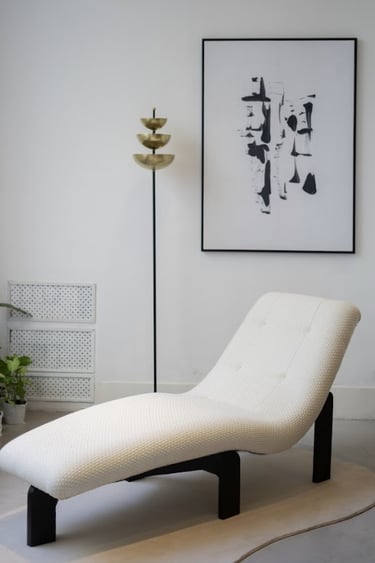 Es así como en Oromanta, quienes empezaron con muebles tallados a mano, volvieron a estos orígenes con una vuelta de rosca estilo provenzal sútil en madera negra acompañado de mobiliario con líneas simples, velas y “Desdemona” en soporte Canvas 90x126 cm por Sofía Bonati.