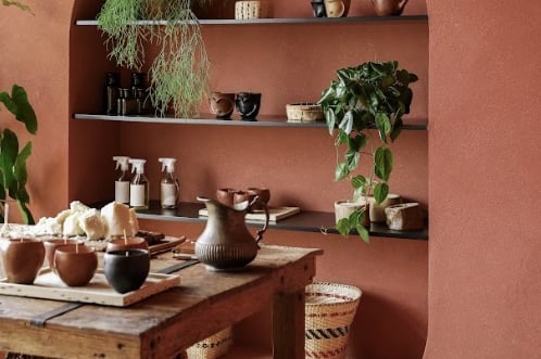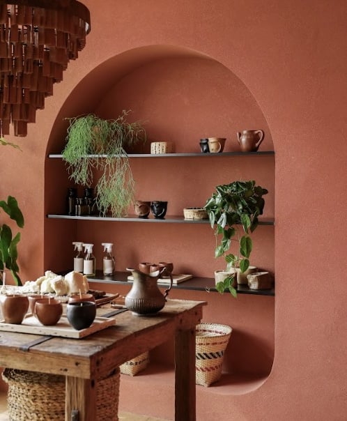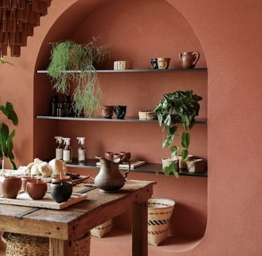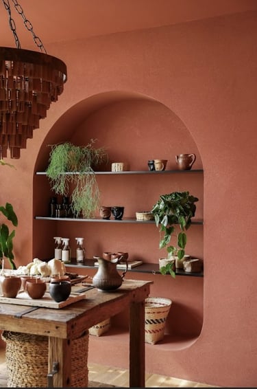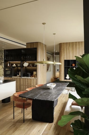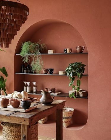 Un tributo a sus raíces en Salta haciendo un guiño a la tradición norteña sin caer en la literalidad de la casa de barro. Con colores tierra y presencia de madera el espacio es una versión elevada de la región.